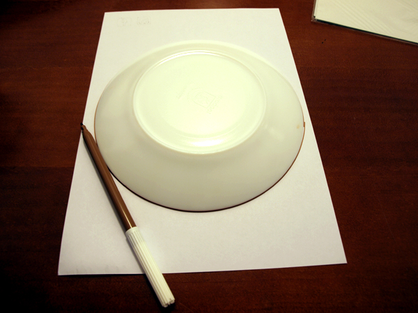 Cuando ya las tengamos todas, cogemos un plato y dibujamos un círculo. Esto es para marcar el centro de la forma de colocar las mariposas, si eliges otro modelo, puedes saltarte este paso.