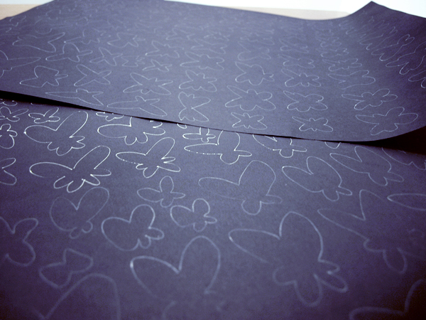 Cuando hayas terminado de pegar las mariposas, retira el folio (con cuidado, seguro que alguna se cae)