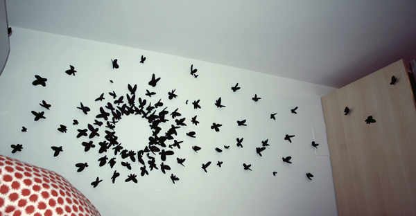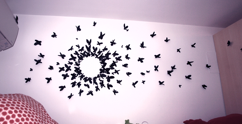Y ya hemos terminado! Coloqué un par en el armario y una sobre el aparato de aire acondicionado, aunque en la imagen no se aprecia. Luego pensé que la cercanía con el aparato de aire es un peligro, porque existe la probabilidad de que en el momento que lo encienda las mariposas ¡echen a volar! (literalmente).