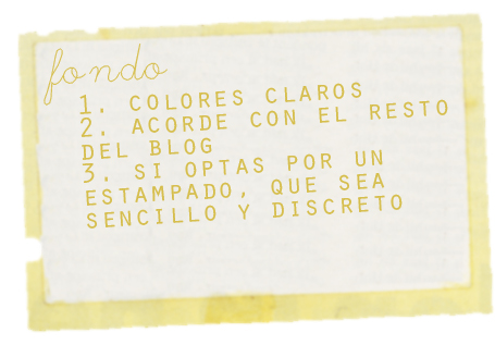 Y, por supuesto, que tenga sentido con tu blog. Si tu temática son los zapatos, no pongas un fondo de cupcakes solo porque son bonitos.