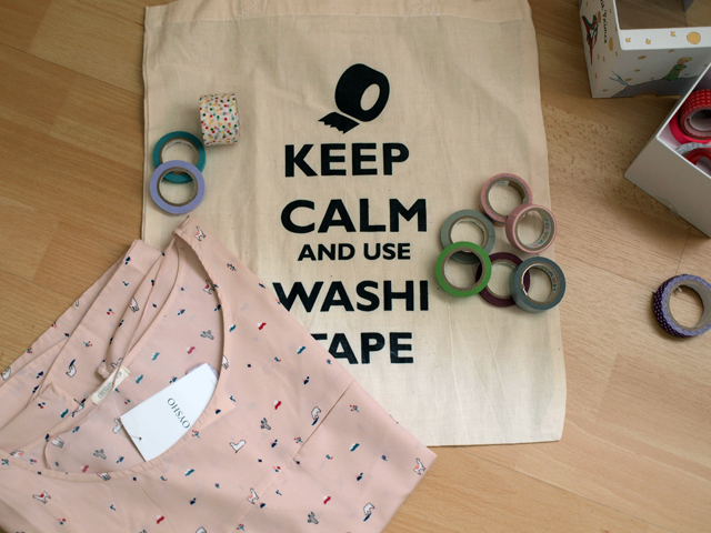 Bolsa Keep Calm de El Bazar de las Cosas Molonas, con algunos de mis washis. Y la camiseta-chollo que encontré en Oysho. A 4 euros, solo quedaba ella, y de mi talla… Parece que me esperaba a mí. ¡Me encantan las llamas del estampado!