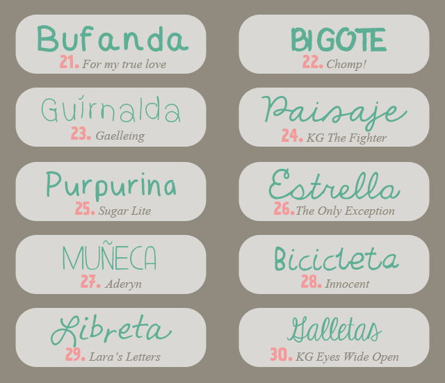 11. Heart Keeper | 12. Janda Stylish Script | 13. KG Hard Candy | 14. Monica Galaxy | 15. Odum Odum | 16. Papa Grape | 17. Stars from your eyes | 18. Retro Electro | 19. DK Keswick | 20. Monkeys and bananas.