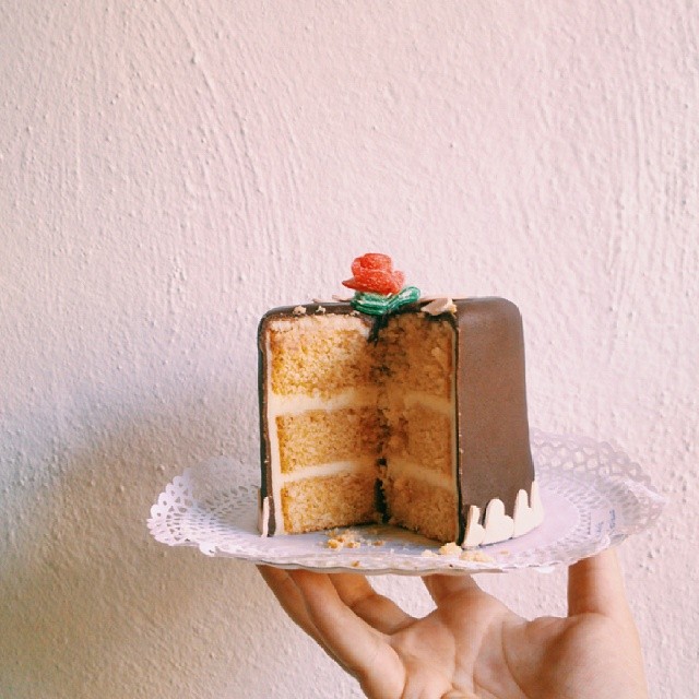 Los primeros días tras la operación me trajeron muuuuchos dulces y goloserías diversas. De todas, la más bonita fue esta mini tarta que me trajo la mami de mi chico. ¡No podía ser más adorable! Y encima estaba buena buena… ¡era de chocolate blanco por dentro! Luego dije que ya bastaba de dulces, porque si no, iba a salir rodando del hospital el día que me quiten el zapato ortopédico… Y me han hecho caso 🙂