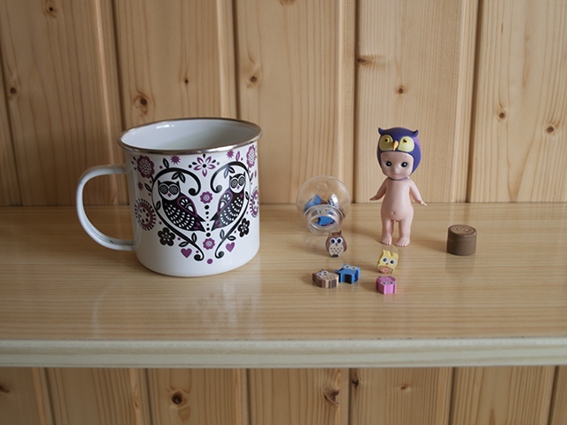 Y mi chico tampoco se portó nada mal. En la foto, algunos regalitos con los búhos como temática. Además, entre otras cosas, el libro de Paula Bonet «Qué hacer cuando en la pantalla aparece The End», un collar, unos macarons… ¡Qué bien me conoce!