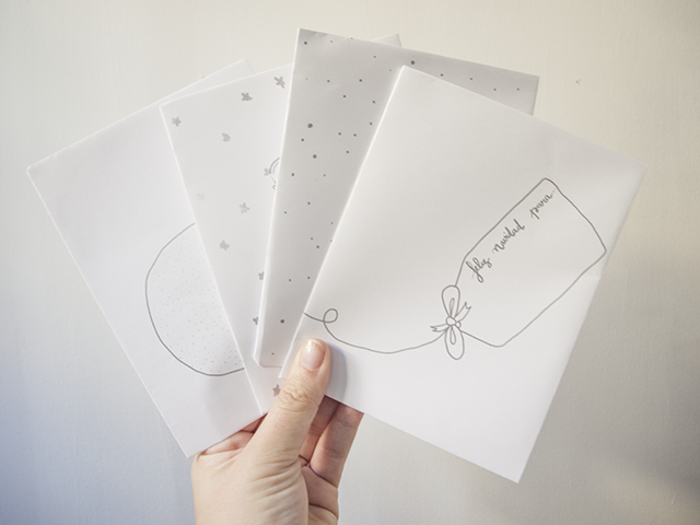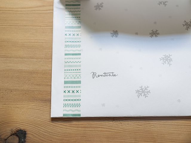 Como está en blanco y negro, podemos probar a darle un poco de color con el bolígrafo que usemos para poner la dirección, poniendo pegatinas, purpurina, o simplemente usando washi tape para reforzar los cierres.