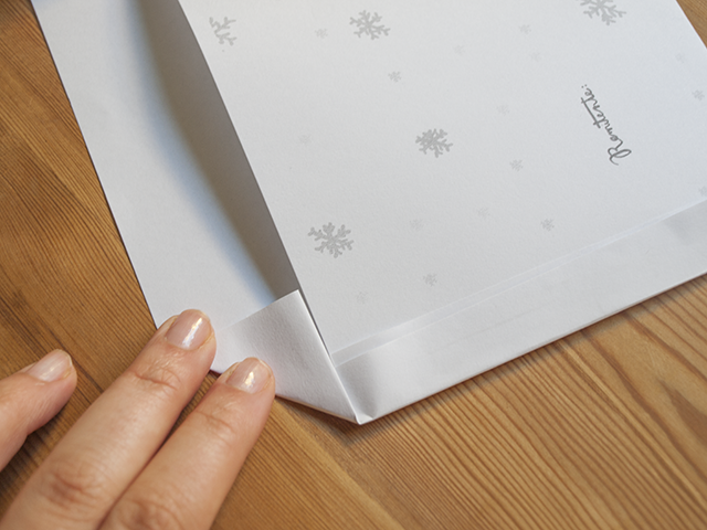 Luego, ya solo queda doblar la esquinas superior y plegar la solapa. ¡Listo! Ya tenemos nuestro sobre navideño.