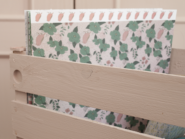 Al ser los cajones profundos, me sirve para colocar algunos objetos más grandes, como los papeles de scrap. Aunque podría tenerlos en cajones, me resulta mucho más cómodo así. Además que, algo que es bonito… ¡Mejor lucirlo!