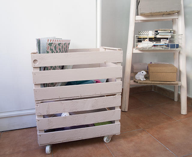 Yo amo las cajas de fruta para decorar, siempre he querido pintar una pero nunca lo hago. No se me habría ocurrido ponerle ruedas, es una gran idea. Yo también tengo ese carrito y no me importaría tener más.