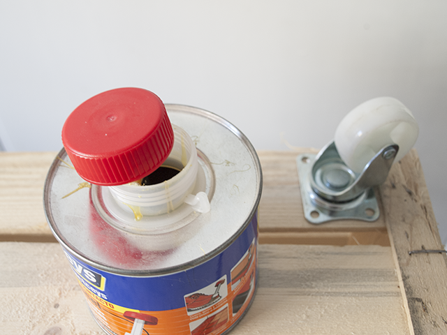 El siguiente paso es colocar las ruedas. Podéis atornillarlas, aunque yo opté por un buen pegamento de contacto y funcionó de maravilla.