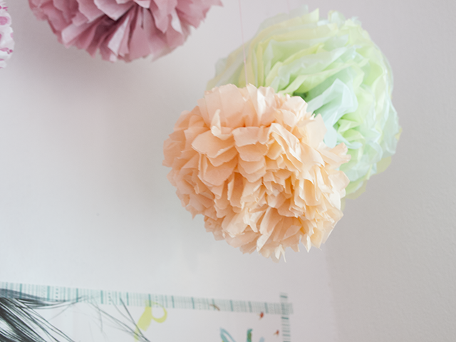 Este es uno de esos DIY poco útiles, porque estoy segura de que a estas alturas ya todo el mundo sabe hacer pompones con papel de seda. Pero lo publico más por enseñar el resultado que por otra cosa. De hecho, ya saqué una vez el paso a paso de los pompones, pero esas vez pensados en empaquetar regalos.
