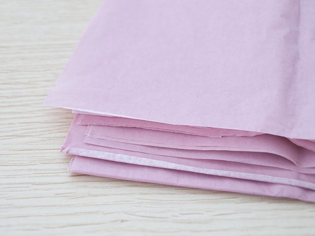 Para hacer un pompón solo hace falta papel de seda y un hilo o cordel. Cuanto más papel de seda usemos más frondosos quedarán. Necesitaremos unas 15 hojas, o más, todas del mismo tamaño (esto es importante). Debéis aseguraros de que están todas correctamente cortadas (los paquetes de papel de seda suelen venir en pliegos muy grandes doblados en varias partes, así que tenemos que garantizar que los hemos separado).