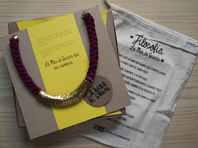 Cuando las chicas de La Mar de Guapa me encantó conocer su filosofía y sus productos. Y más aún que me mandaran uno de sus preciosos collares,  dentro de una caja con un packaging fantástico y acompañado de una bonita bolsa. Me encantan las marcas que cuidan cada detalle, y esta desde luego me ha conquistado 🙂