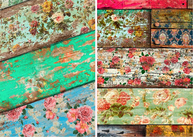 Otro recurso muy socorrido es usar distintos papeles como los de scrapbooking, que no sólo son económicos sino que tienen diseños preciosos y muy variados: con efecto pizarra, con estampados geométricos o vintage, imitando a madera (muy útiles sino queréis andar haciendo tableros o no tenéis espacio para guardarlos)…