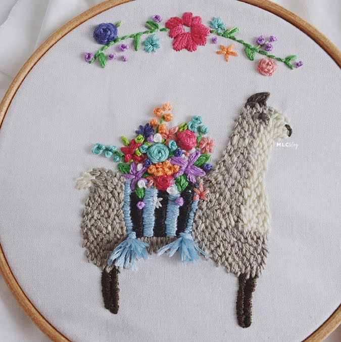 Esta pregunta sí que me sorprendió. Porque yo lo que hago es dibujar en un papel, ver más o menos qué composición quiero hacer, y luego pasarlo con un lápiz a la tela. No utilizo patrones ya hechos. De hecho, voy improvisando mucho. Por ejemplo, en el bordado de la llama, no dibujé todas las flores. Dibujé las más grandes, y el resto las fui haciendo sobre la marcha.