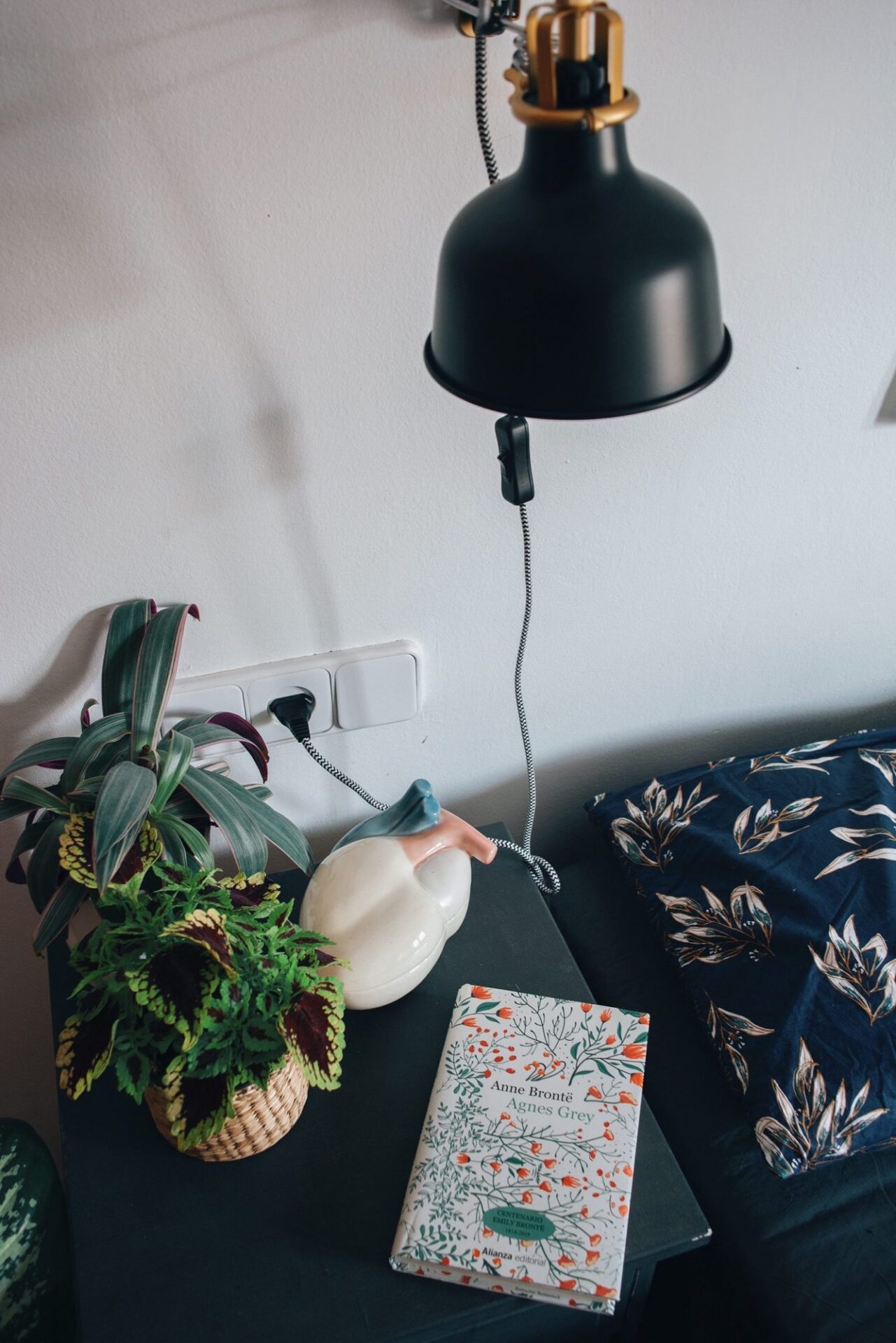 Para seguir decorando un poco más el dormitorio, cambié las lamparitas, colocando en la pared las RANARP de Ikea, que me parecen una monada. A modo de tapiz usé un pañuelo de Bimba & Lola que me regaló mi tía. Me parece precioso, y como pañuelo nunca lo usaba, me encantan los colores. Para rematar, colgué en la pared un original de Esther Gili que creo que combina perfectamente con el tapiz. Como ves, mezclo alegremente objetos de tiendas low cost, de segunda mano, reutilizo, y tengo también piezas más especiales. ¡En la variedad está mi perfección!