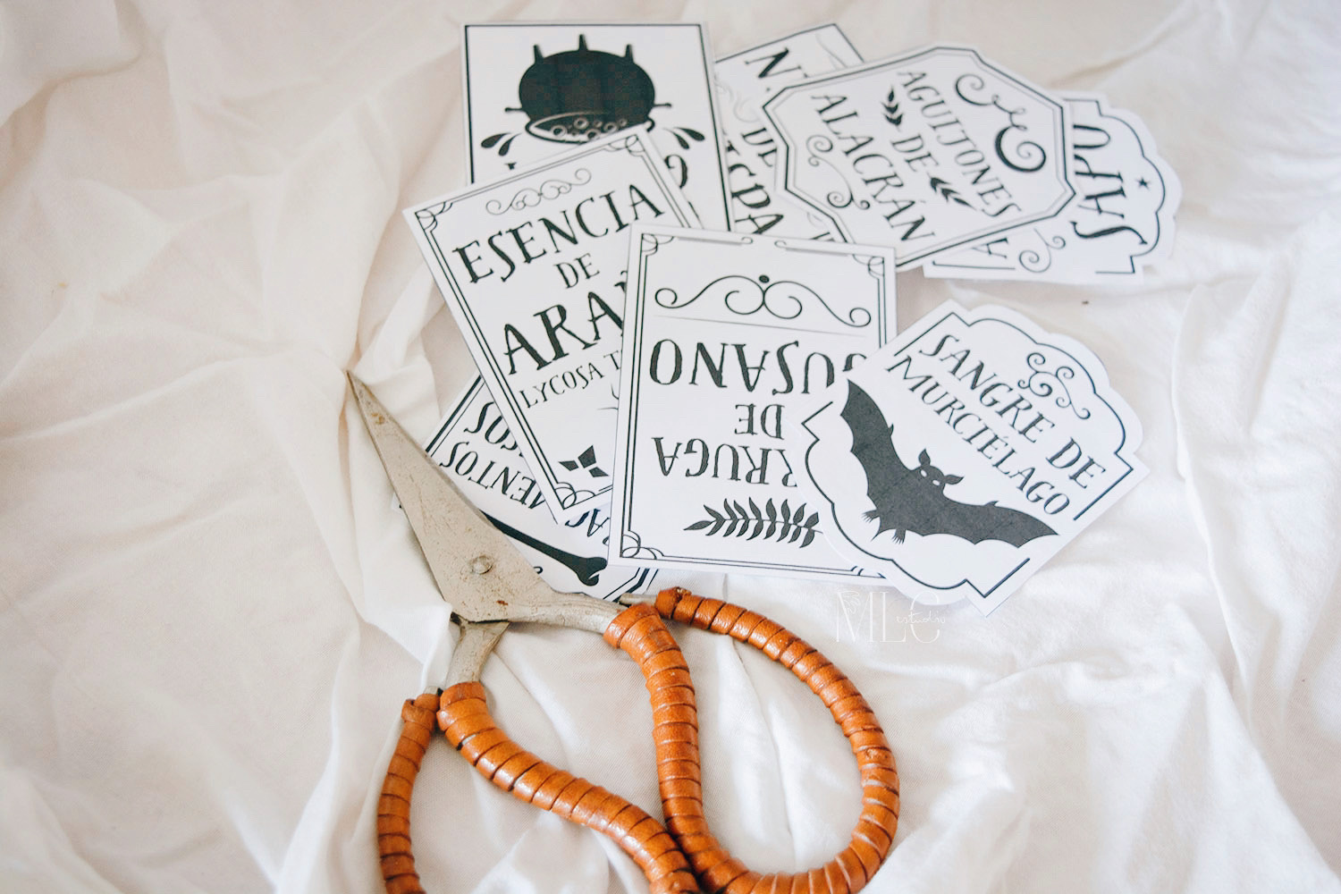 Este imprimible de Halloween se compone de ocho etiquetas diferentes, con ingredientes de «miedo», escritos en español, y que pueden dar mucho juego. He incluido dos haciendo un guiño a una película que me encanta ver en estas fechas, a ver si alguien los descubre 😉