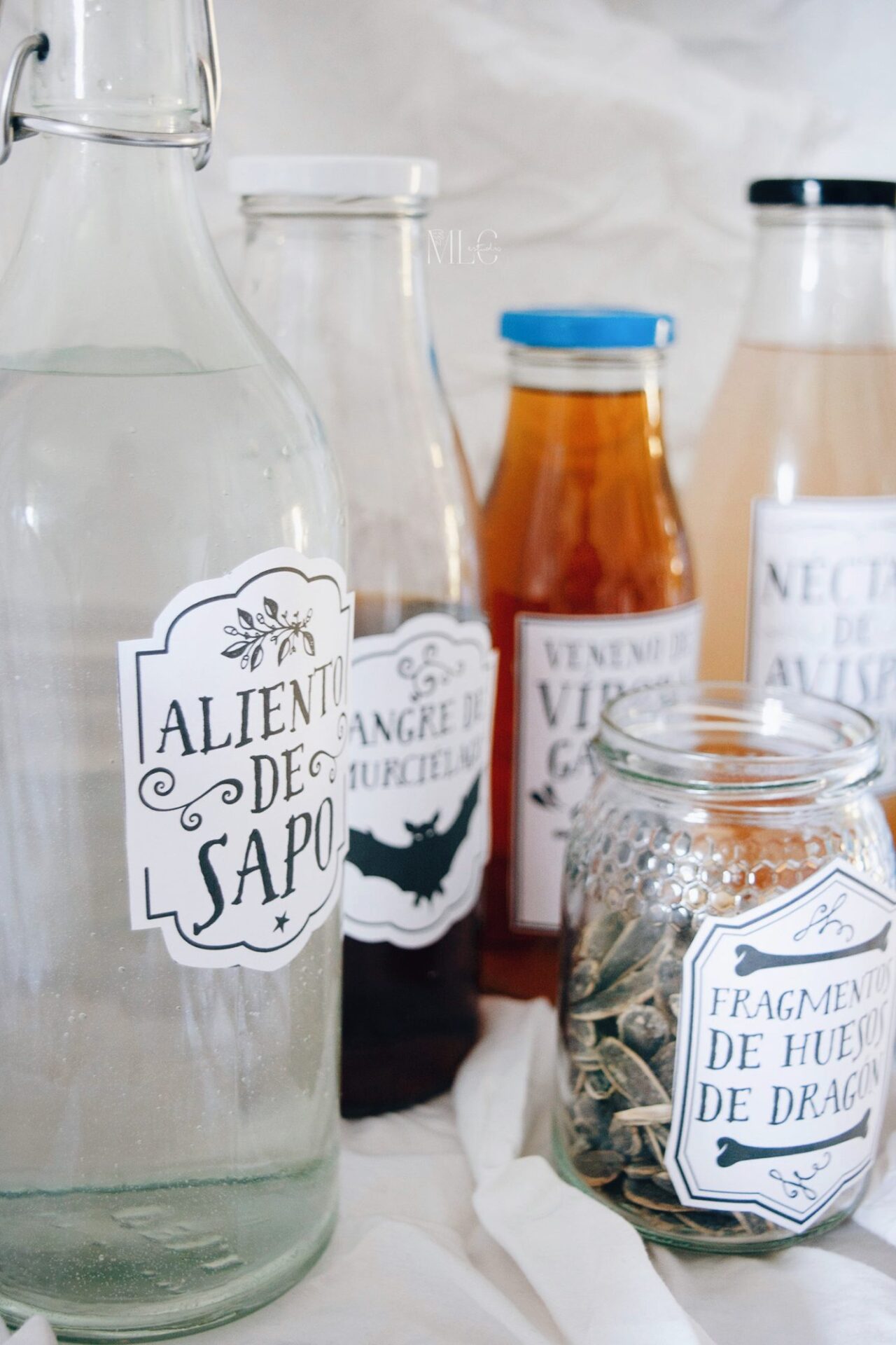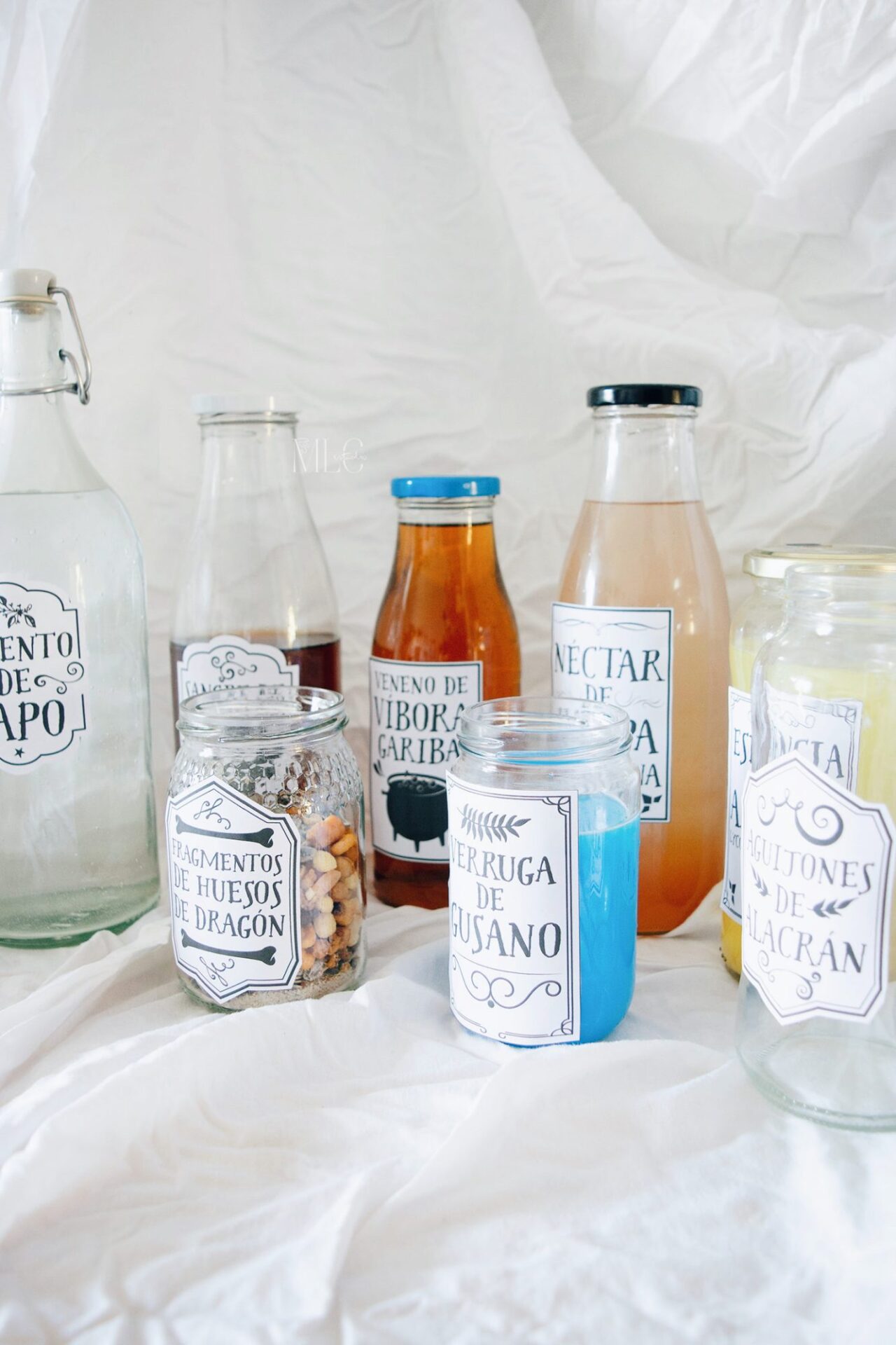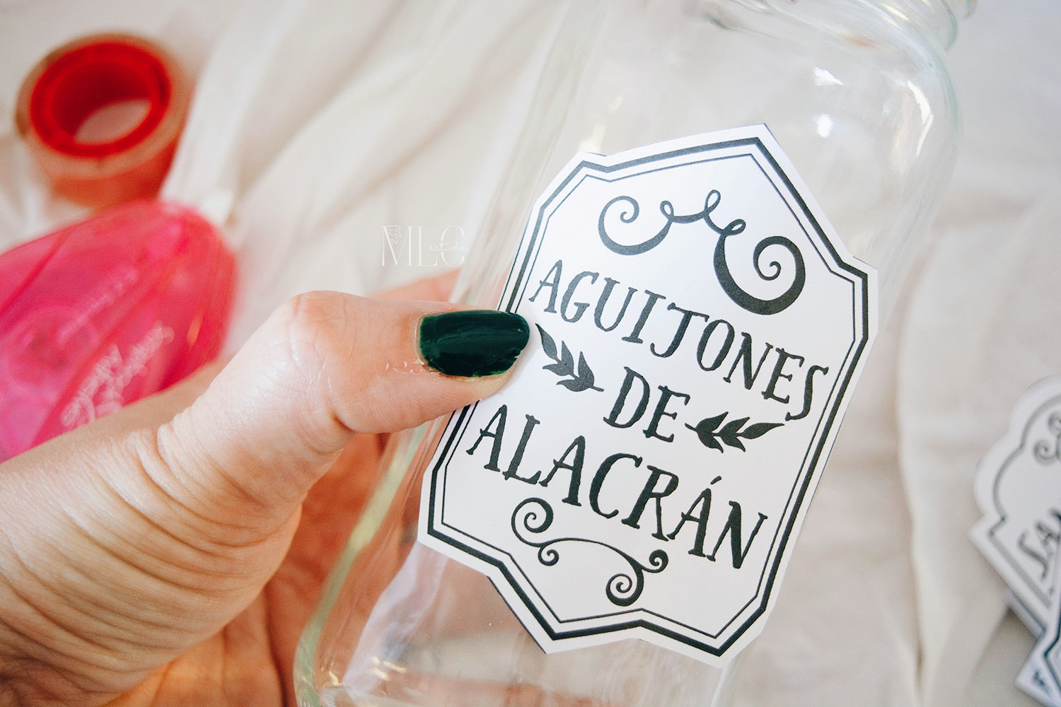 Por el contrario, si queremos darles un uso real, podemos utilizar las etiquetas para decorar los vasos que se vayan a usar, o incluso colocarlos en los botellines de refrescos, de cervezas o de vino. También podemos usarlas en frascos con picoteo y comida, porque, ¿quién dice que la verruga de gusano no tiene aspecto de frutos secos? 🤪