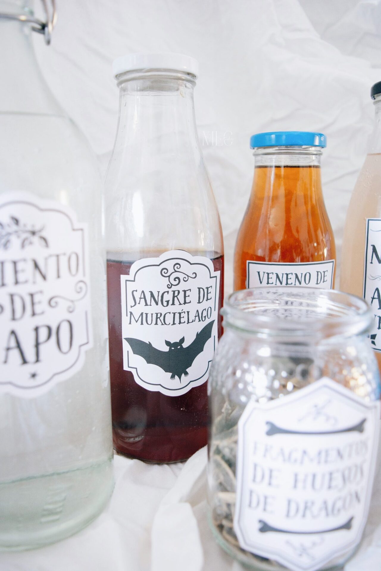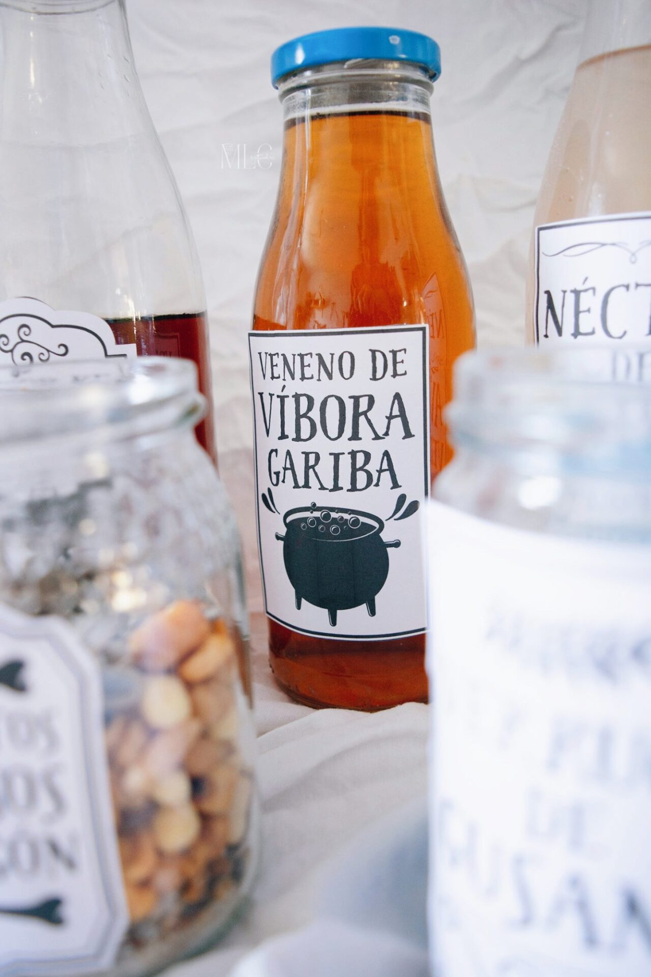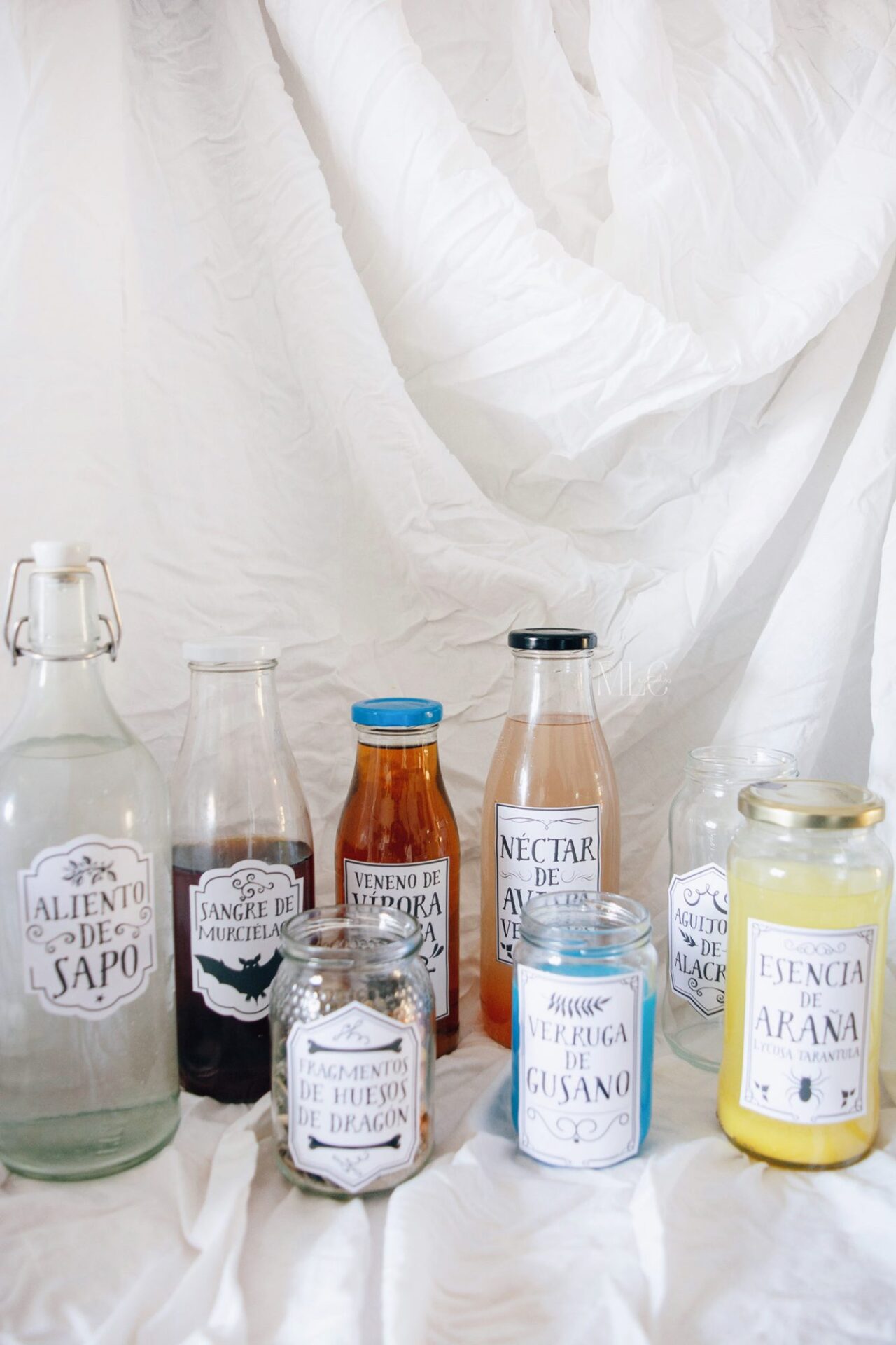 Por el contrario, si queremos darles un uso real, podemos utilizar las etiquetas para decorar los vasos que se vayan a usar, o incluso colocarlos en los botellines de refrescos, de cervezas o de vino. También podemos usarlas en frascos con picoteo y comida, porque, ¿quién dice que la verruga de gusano no tiene aspecto de frutos secos? 🤪