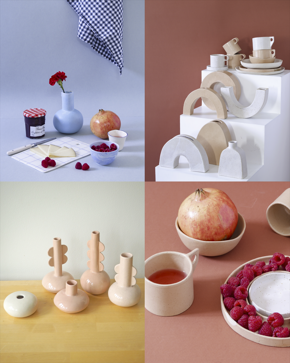 En DO Cerámica también encontramos esas piezas más tradicionales pero que son de lo más especiales. Con colores naturales, recuerdan a la casa de campo. Invitan a tener un estilo de vida pausado, a disfrutar de la sobremesa y de los pequeños placeres. Desde Barcelona, también organizan talleres. El kit del mortero me parece una preciosidad.