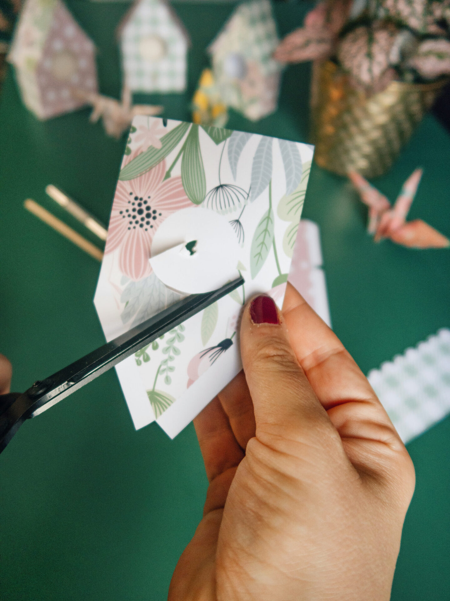 Finalmente, añadimos el tejado. De forma opcional, podemos hacer una rajita con un cúter y añadir un palito. ¡Así quedará más auténtica!